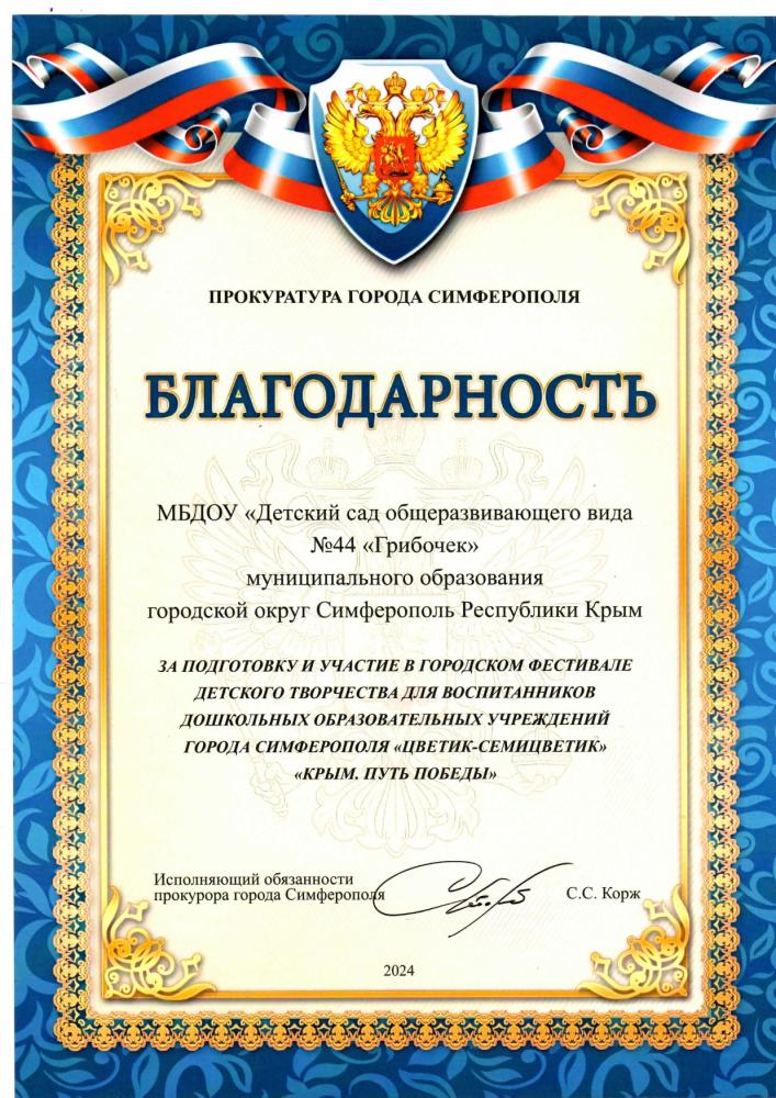 Муниципальное бюджетное дошкольное образовательное учреждение «Детский сад общеразвивающего вида №44 «Грибочек» муниципального образования городской округ Симферополь Республики Крым