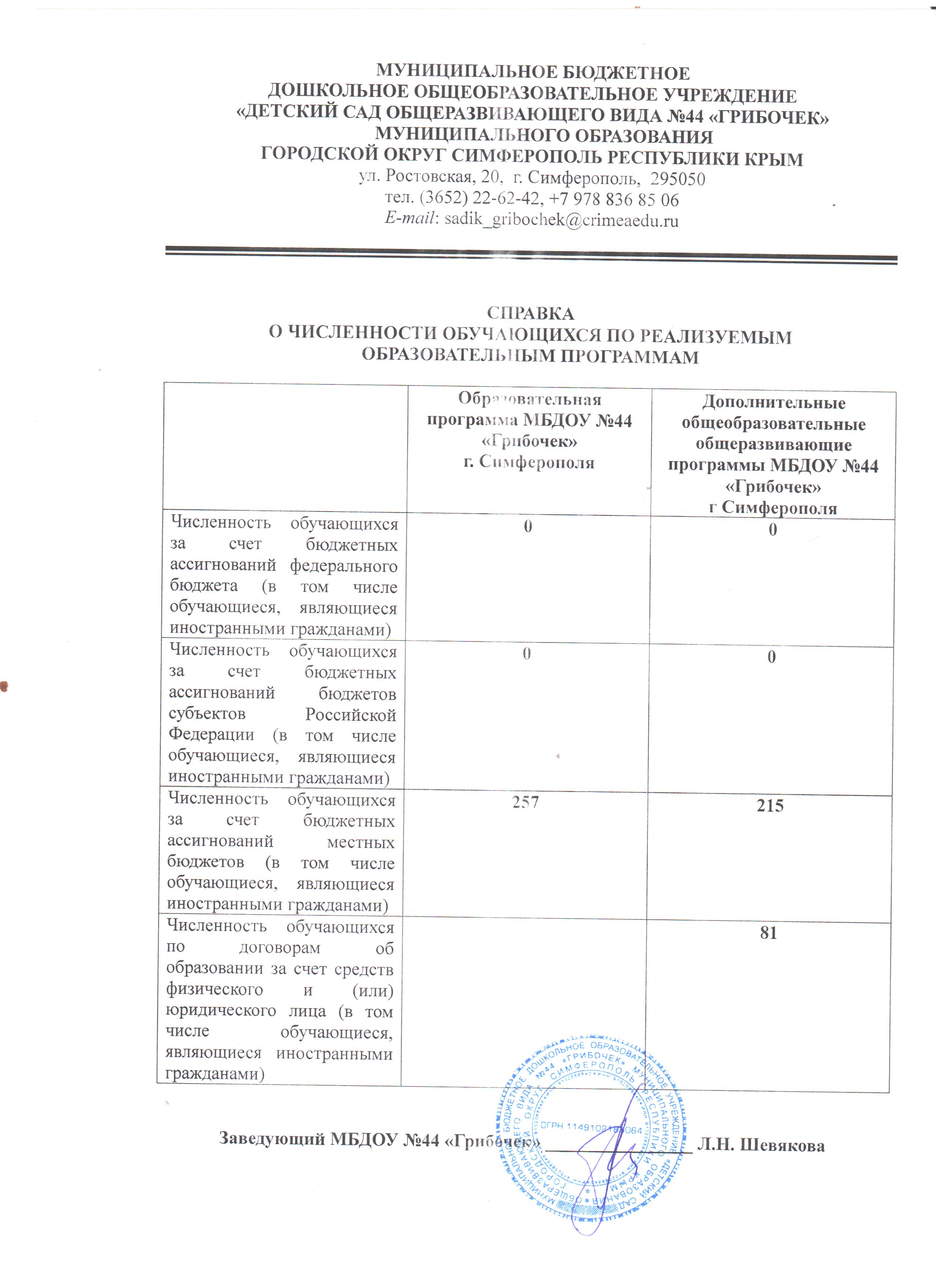 Муниципальное бюджетное дошкольное образовательное учреждение «Детский сад общеразвивающего вида №44 «Грибочек» муниципального образования городской округ Симферополь Республики Крым