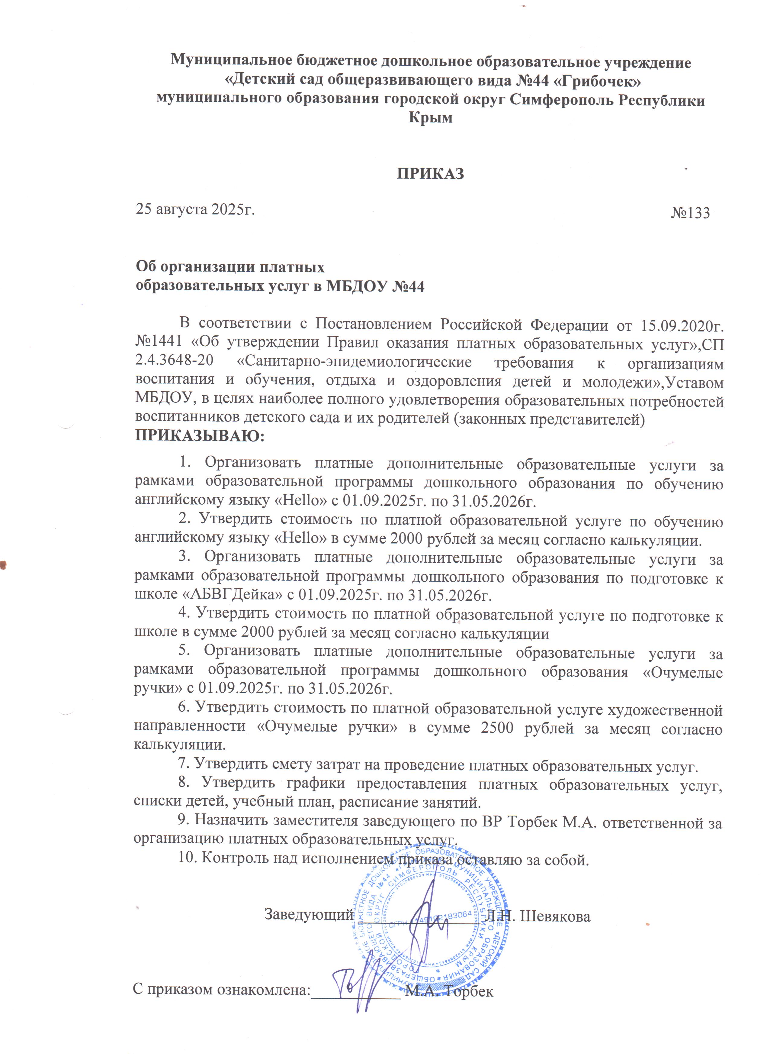 С октября 2025 года в МБДОУ №44 "Грибочек" г.Симферополя предоставляются 2 платные образовательные услуги «Обучение английскому языку «Hello» и "Подготовка к школе "АБВГДейка".
